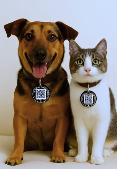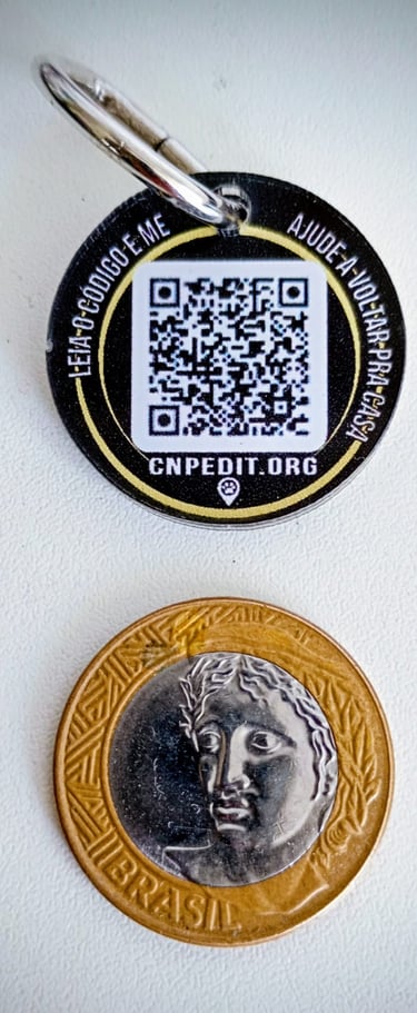 Por isso criamos uma medalha com QR Code que conecta quem encontra o pet diretamente com seu responsável, facilitando o reencontro de forma rápida e simples.